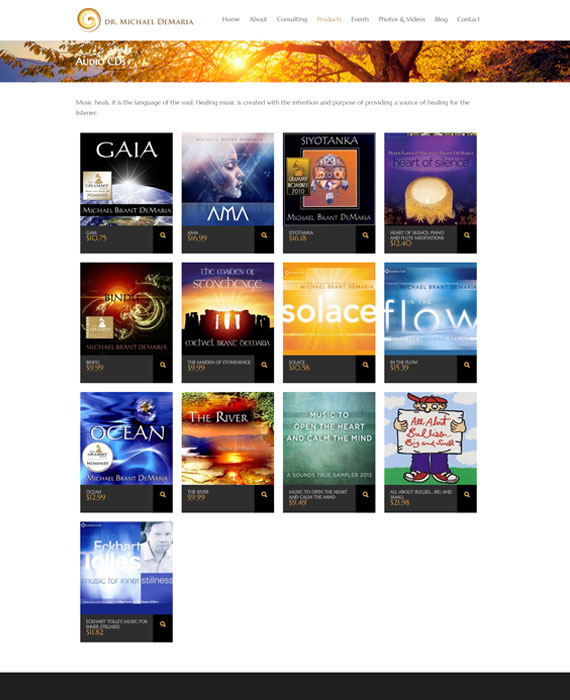 Michael DeMaria is a psychologist, author, speaker & four-time grammy® nominated artist. Michael is a multi-instrumentalist whose albums and live performances touch his audience and listeners with his sincere and heartfelt music. As a speaker and workshop leader, Michael has presented nationally and internationally. 01 WordPress WooCommerce 02 Web Design UX / UI DESIGN