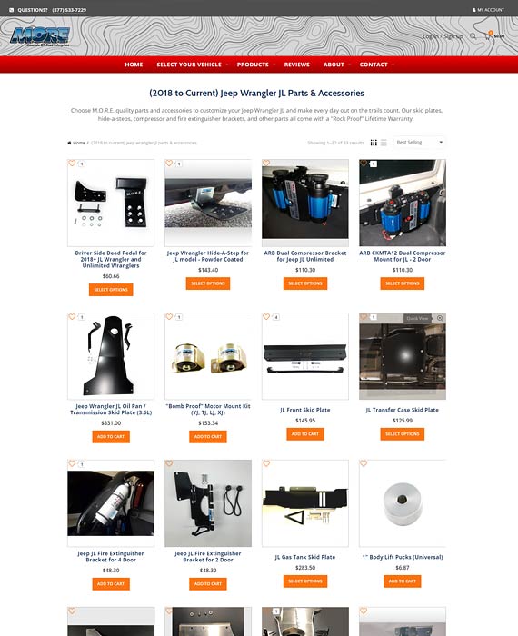 Mountain Off-Road Enterprises manufactures the toughest Jeep & Toyota 4×4 aftermarket parts & accessories. If you are an avid Jeeper, check out their body armor, lift kits and suspension and steering parts. 01 Shopify Mailchimp 02 Ecommerce Web Design ECOMMERCE PLATFORM MIGRATION UX / UI DESIGN