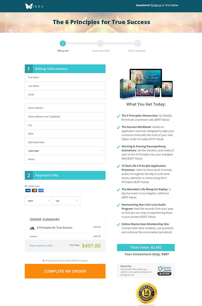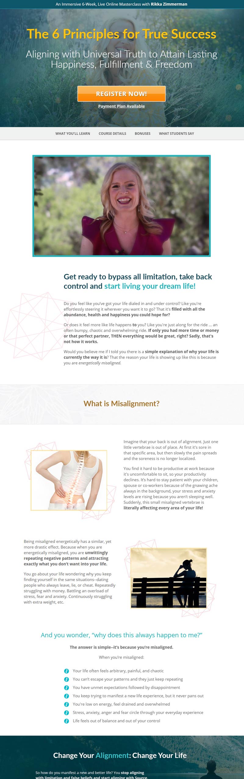 LANDING PAGE TYPES: SALES PAGE, ONE-TIME OFFER, CHECKOUT Building out all the assets for a product launch can be daunting when you are in the thick of it. But once the cart closes and the numbers are in, you can look back and appreciate all the strategy and teamwork that made it all possible. Below are just a few of the landing pages from this launch. 01 WordPress OptimizePress Infusionsoft Integration Spiffy Order Forms Demio 02 Landing Page Design Collaborate in Funnel Design & Product Launch Facebook Ad Management Send paid traffic to high-converting landing pages for better message match and increased ROI.The 6 Principles for True Success